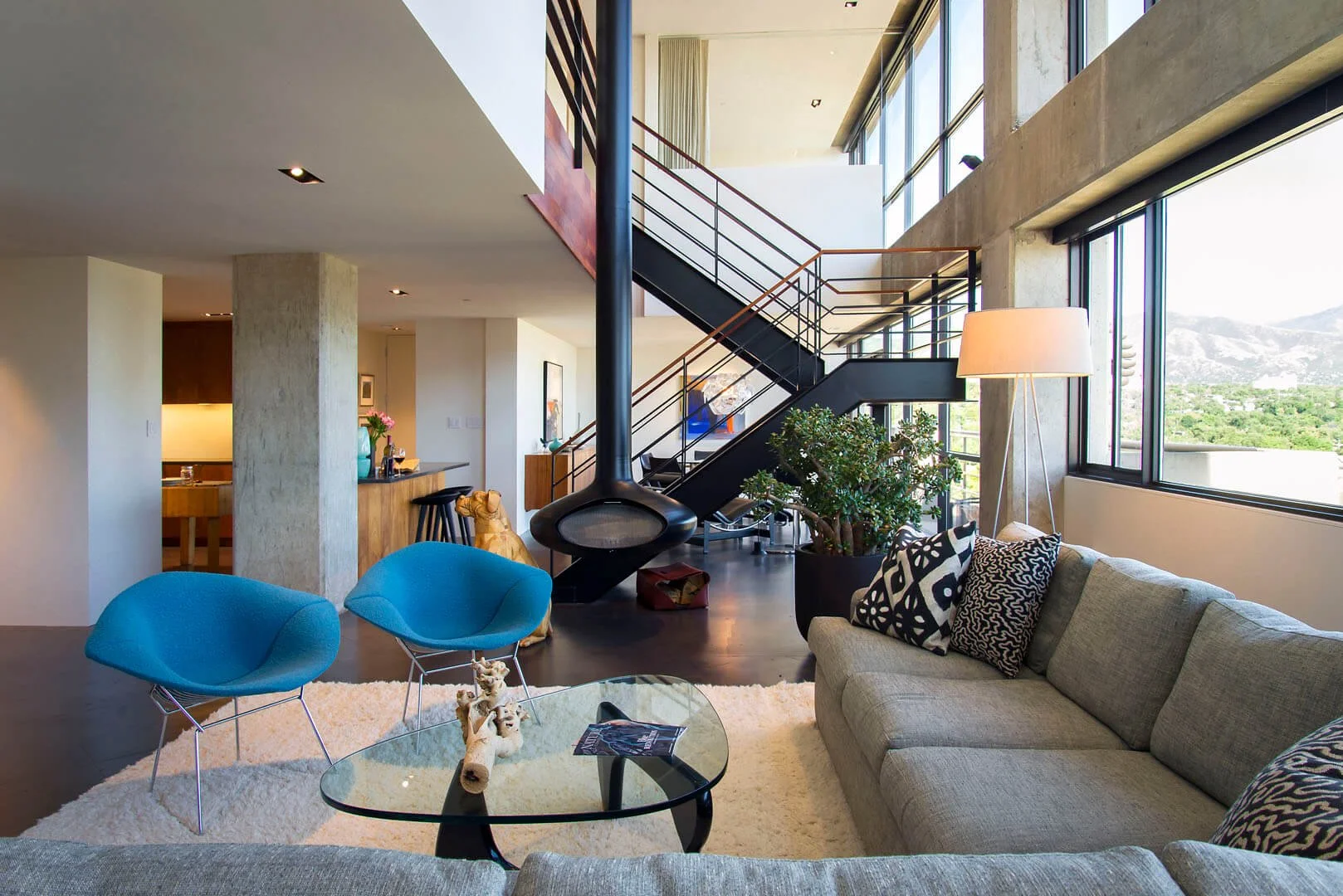 Mostly the space remains wide open, lending itself to exquisite views and free flowing living, but when privacy is required curtains can be drawn to divide spaces, softening both aesthetics and acoustics.