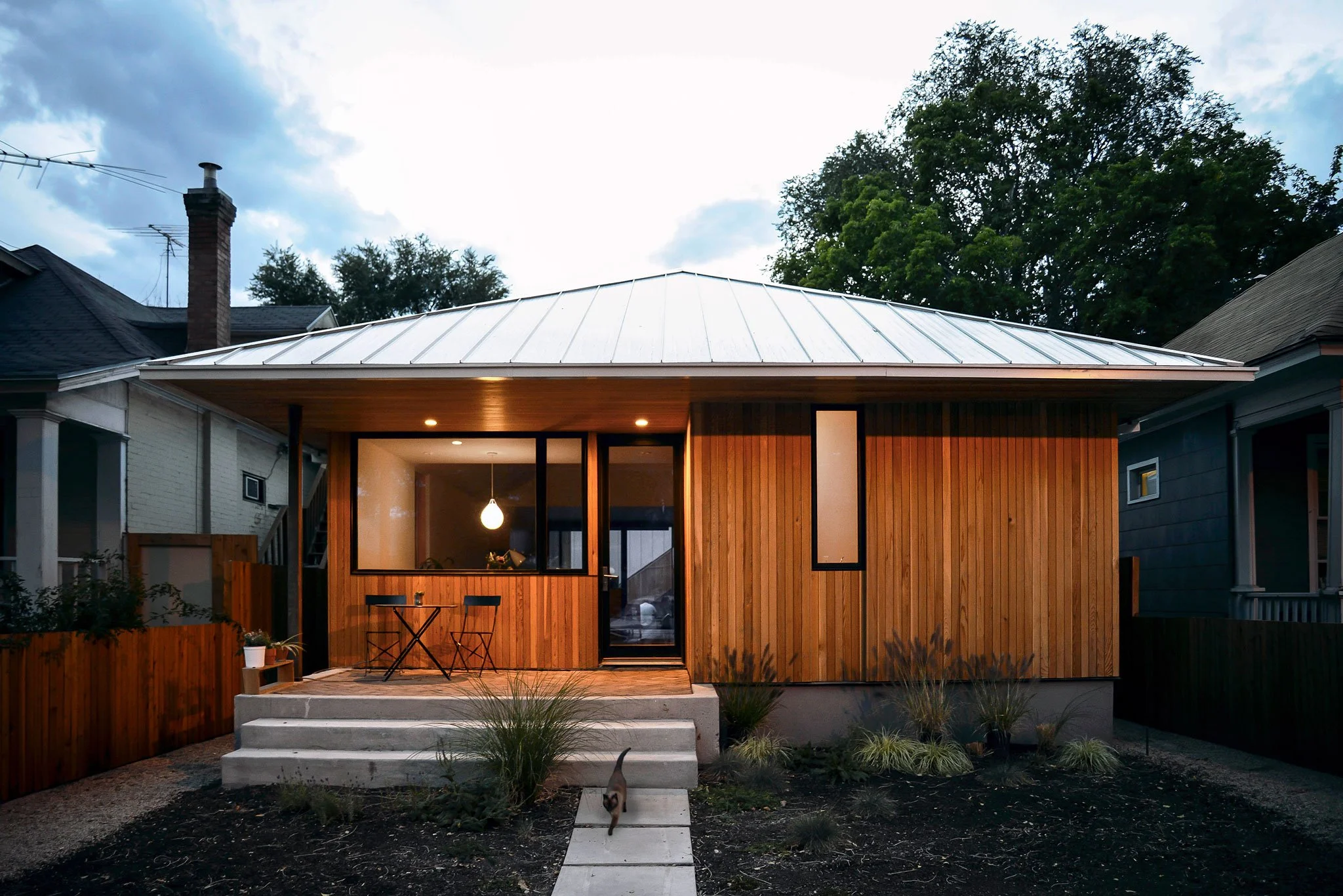 Working with the Salt Lake City Redevelopment Agency, Chris redeveloped a condemned lot, designing and building a modern, sustainable home for the neighborhood. To keep in context of the neighborhood he crafted a modern take on the classic Salt Lake City bungalow - simple, small scale, emphasized roof overhangs, and a front porch to create sense of community and street presence.