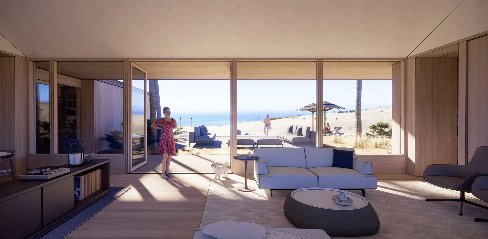 Concept : Prescribed hipped roofs shelter outdoor spaces, capping a ranch vernacular design, layout and modern aesthetic